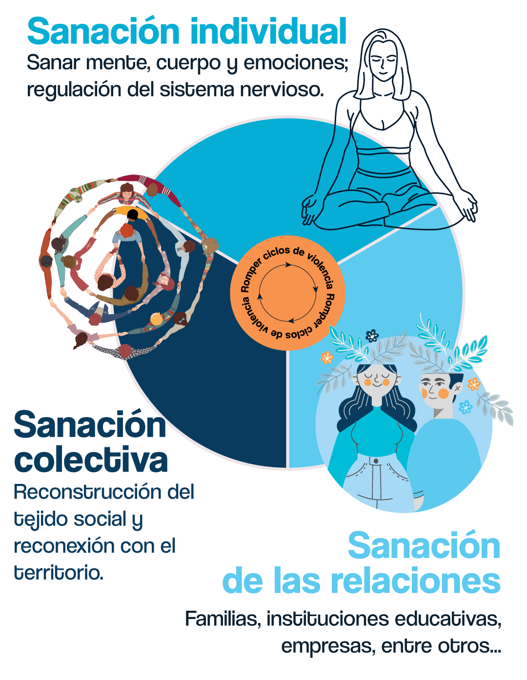 En Corporación Dunna trabajamos desde un enfoque sistémico: entendemos que la sanación no ocurre de forma aislada. Impulsamos la sanación colectiva, un proceso en el que todos los actores del sistema se regulan, se conectan y se transforman juntos.
